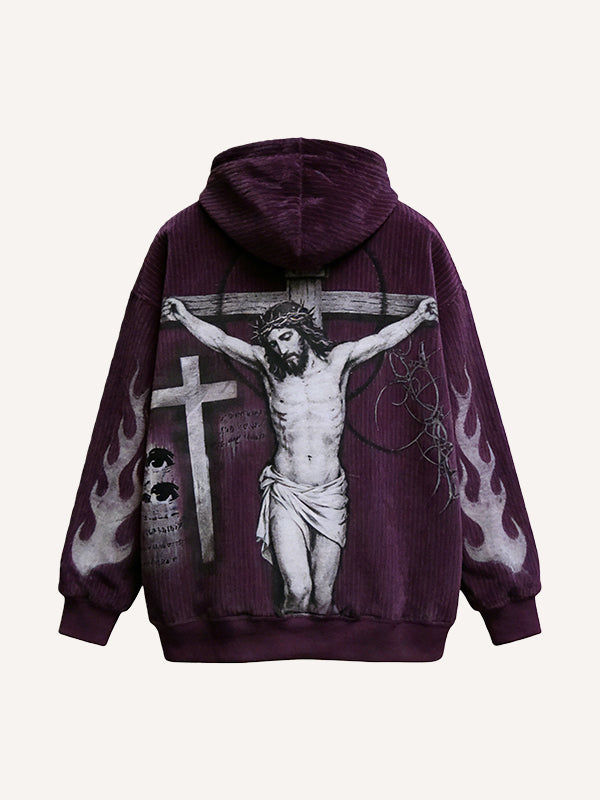 The effect is not necessarily that of a corduroy sweatshirt with a Virgin Mary print