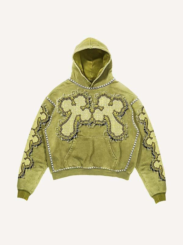 Cross&Skull Faux Decal Print Slant Pockets Hoodie