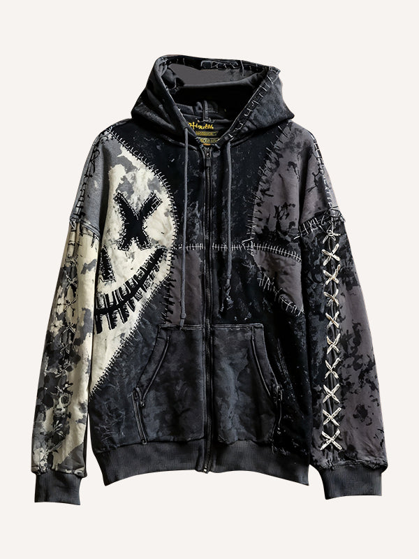 Distressed zipper comfortable retro Halloween atmosphere sweatshirt