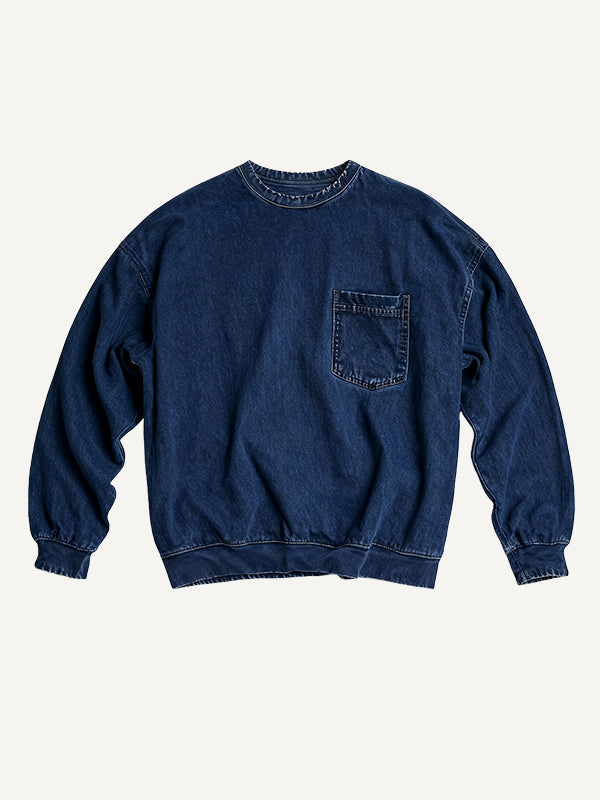 Sashiko tiger pattern washed denim fashion sweatshirt
