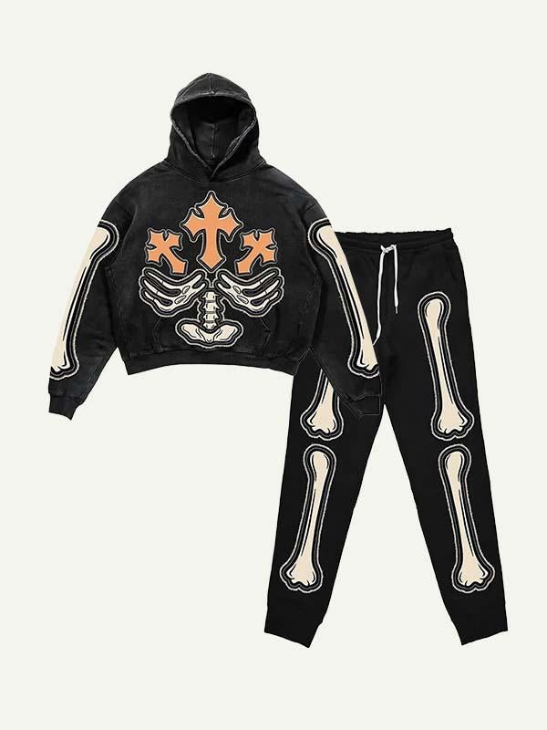 Skeleton&Wing&Cross&Letter Faux Decal Print Elastic Waist Two-Piece Set