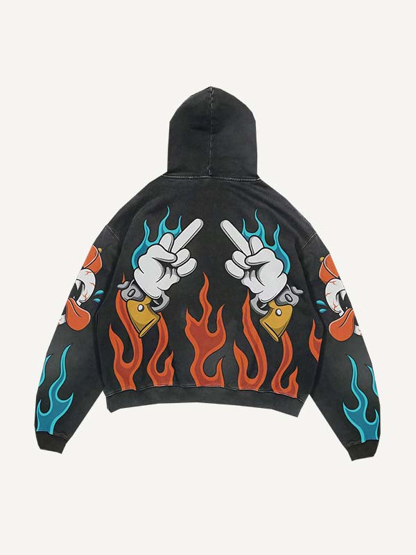 Skull&Eyeball&Fire&Smiley Face Print Slant Pockets Hoodie