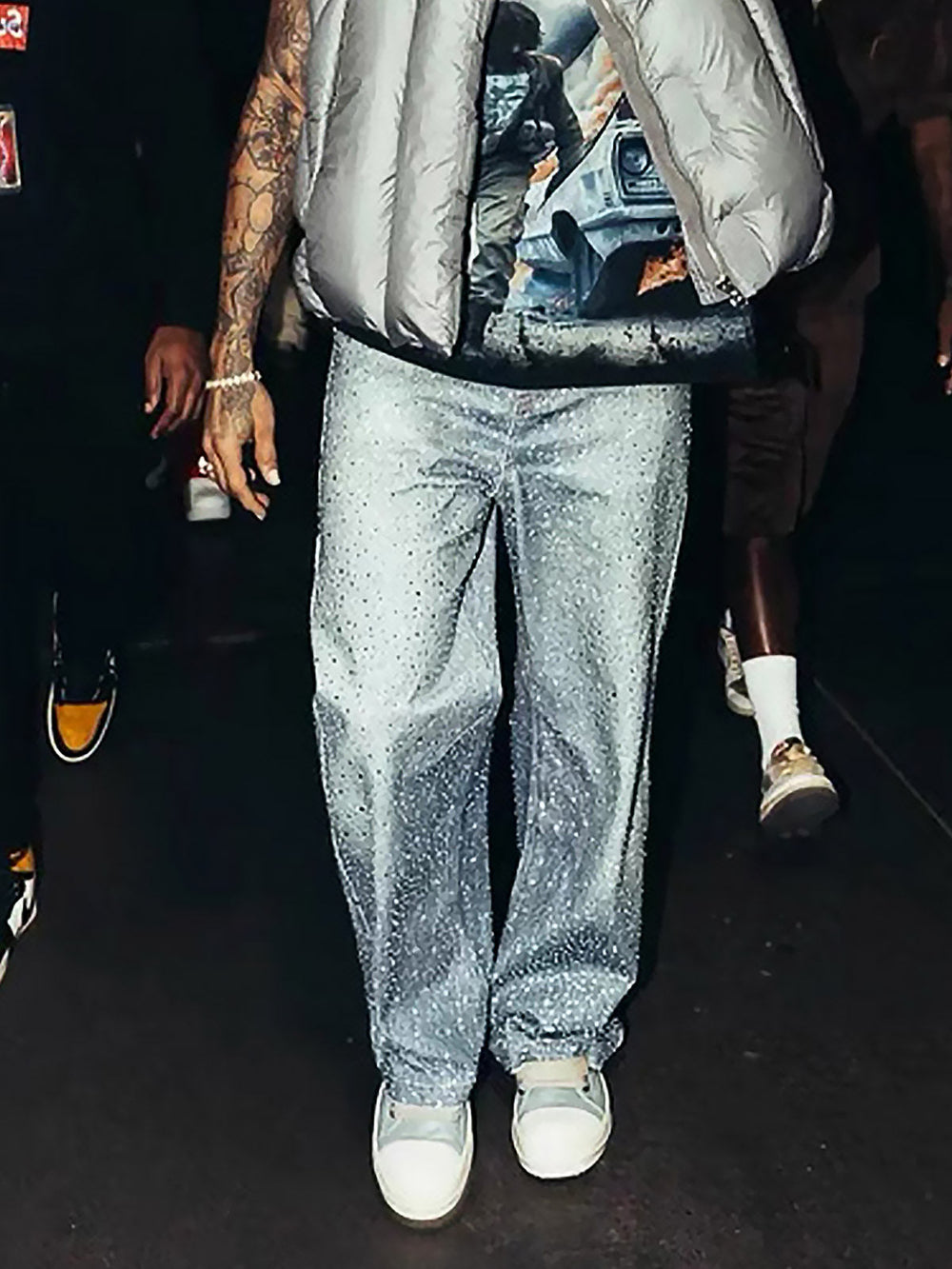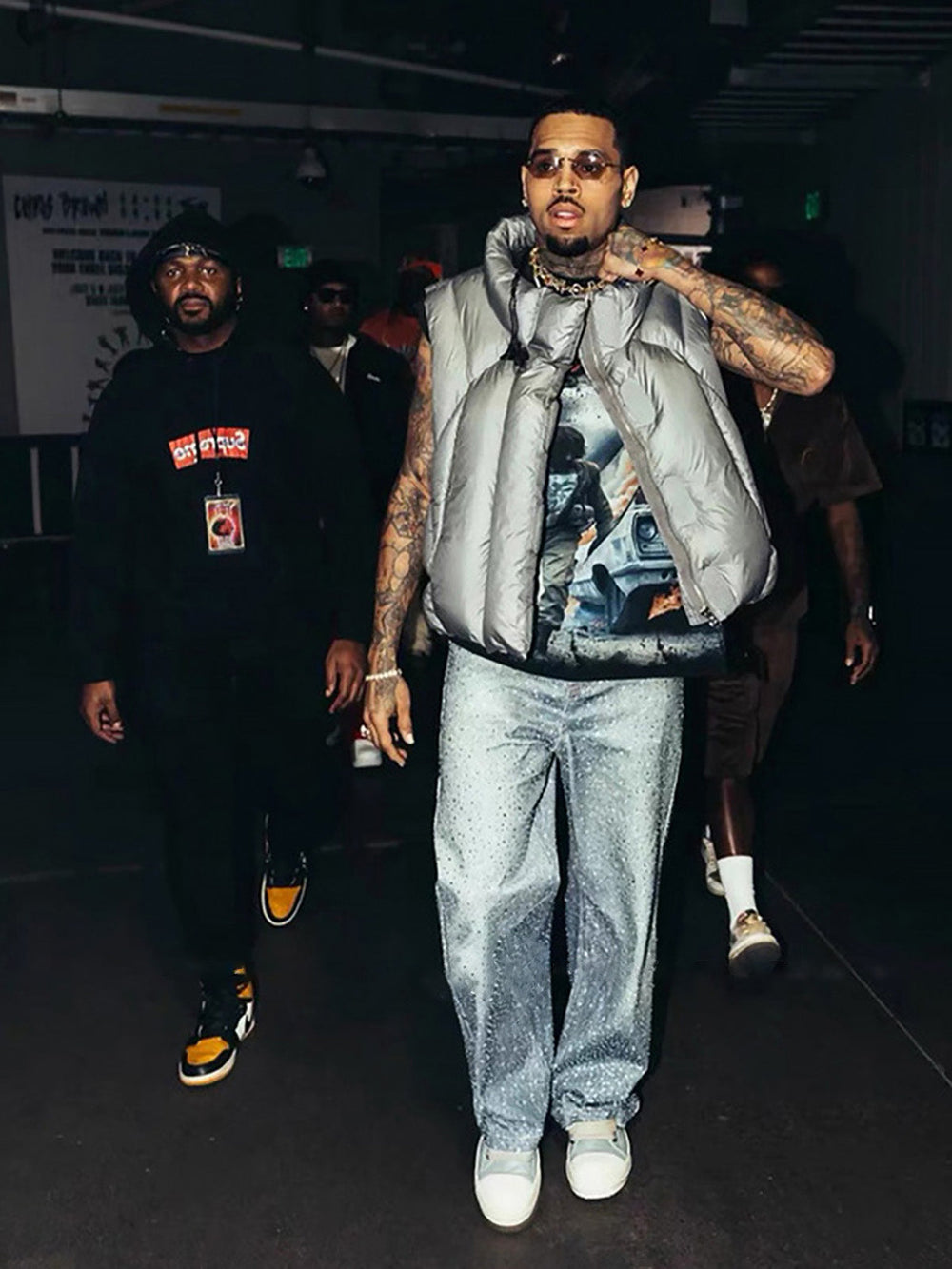 • Design Elements: All-over sequin embellishment on pants. graphic print tee. puffer jacket for layering