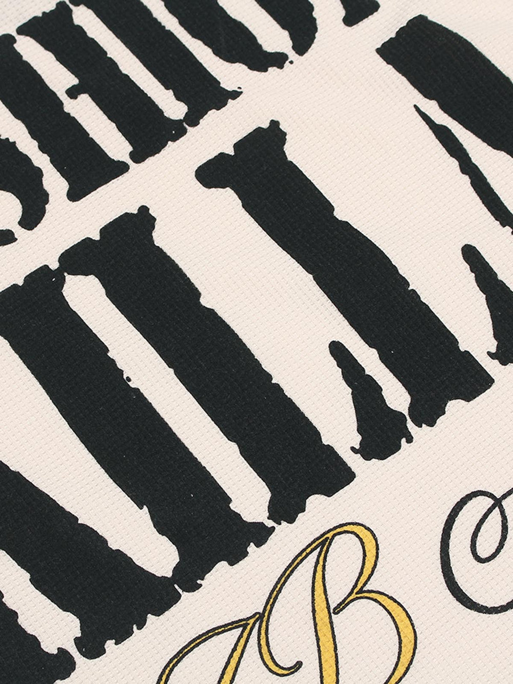 • Design Elements: Bold graphic print on the front. stylish lettering on sleeves