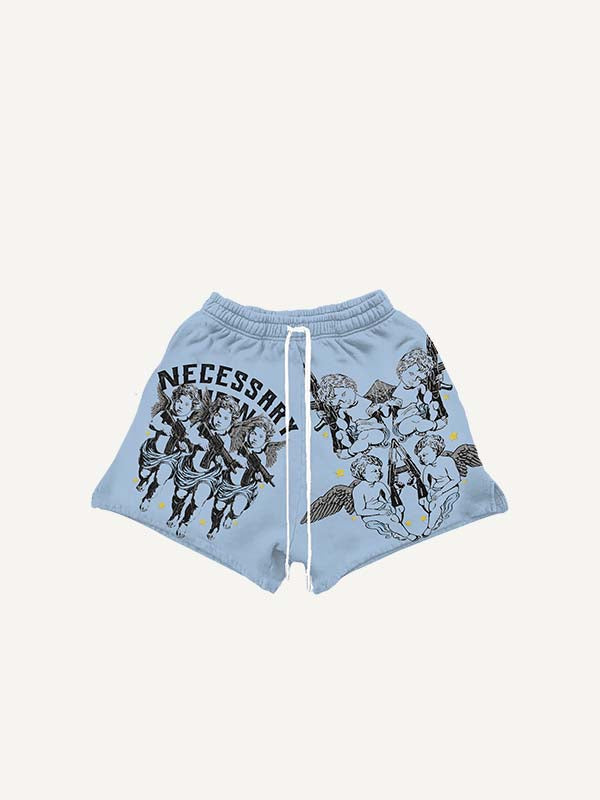 Angel&Gun&Letter Print Drawstring Waist Shorts