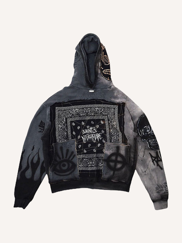 Cashew Flower Patchwork Distressed Comfortable Sweatshirt