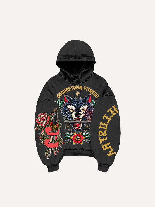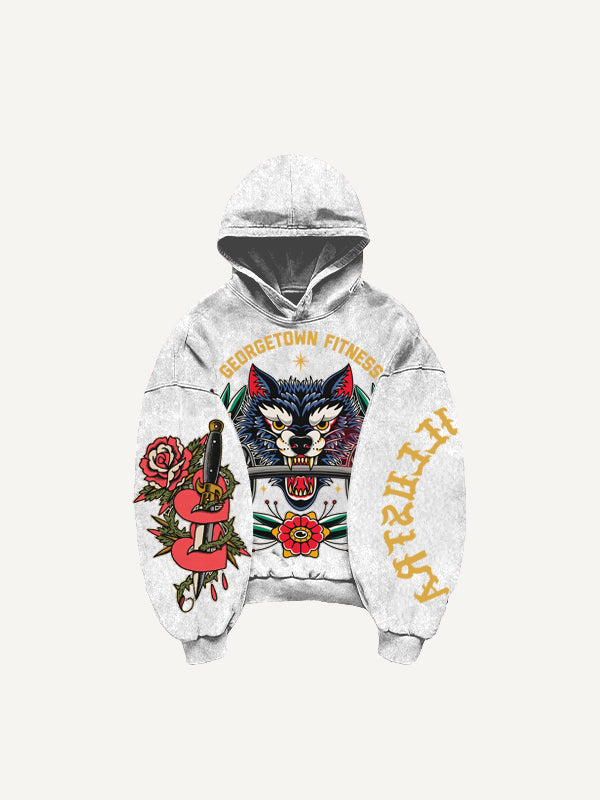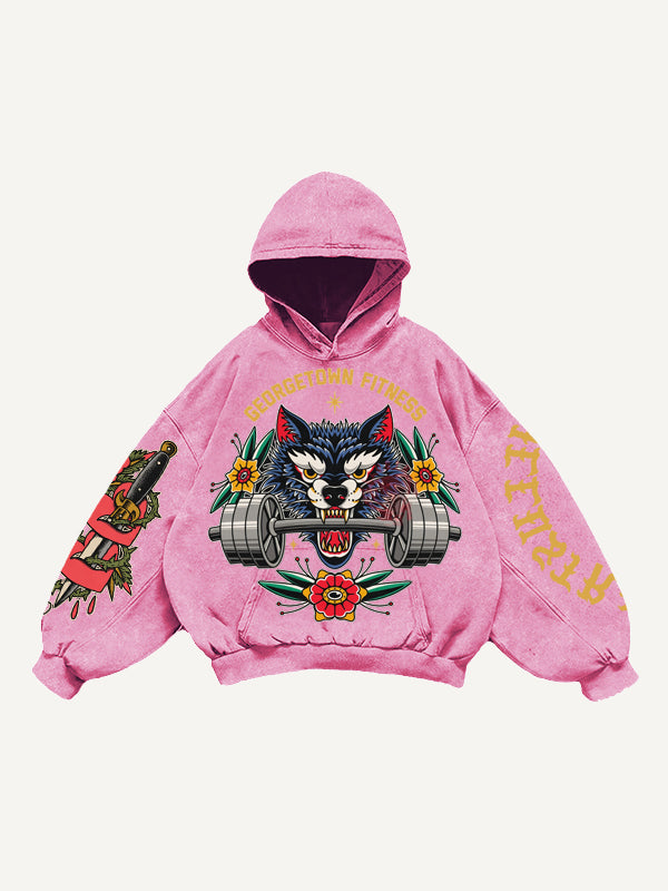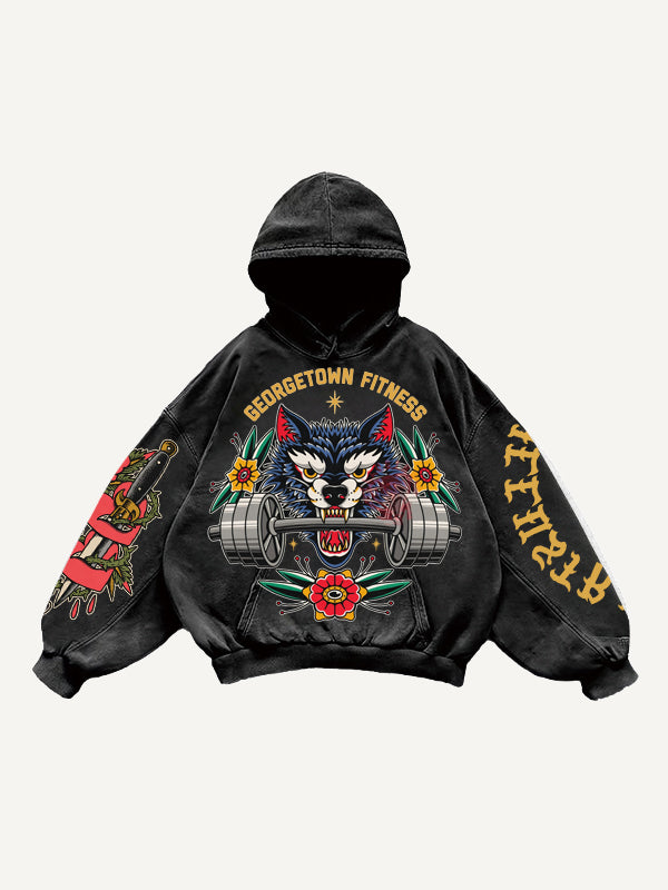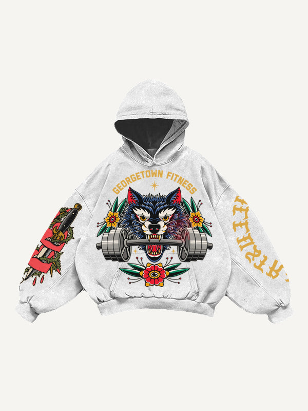 Fitness Barbell Giant Wolf Street Tattoo Sweatshirt