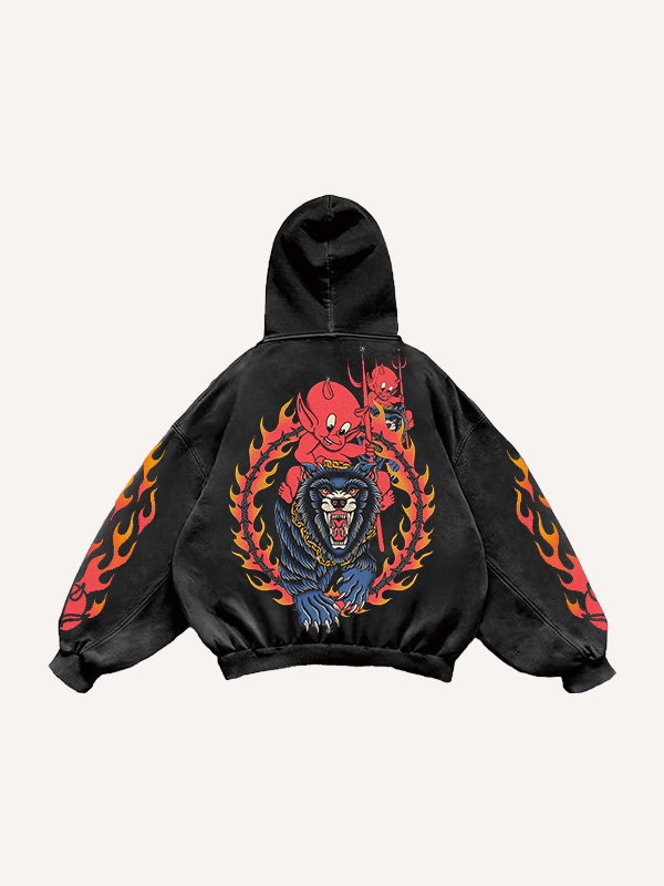 Flame Devil Tattoo Style Print Sweatshirt
