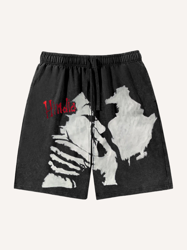 Hand-painted kiss love street fashion shorts