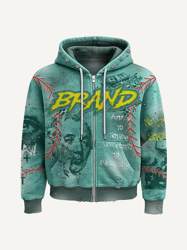 High-end washed distressed print trendy sweatshirt