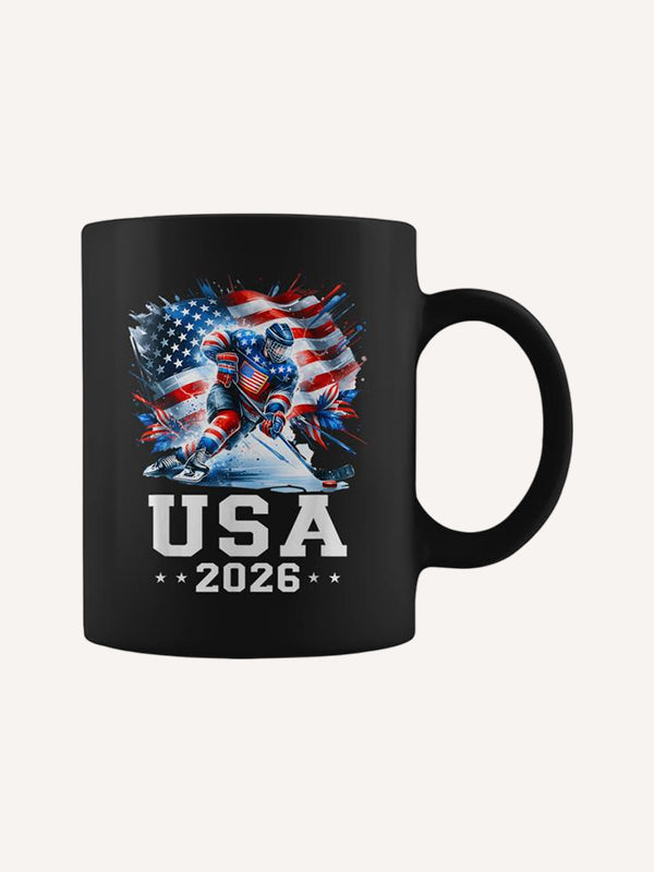 Patriotic American Flag Ice Hockey Hockey Player Fan Coffee Mug