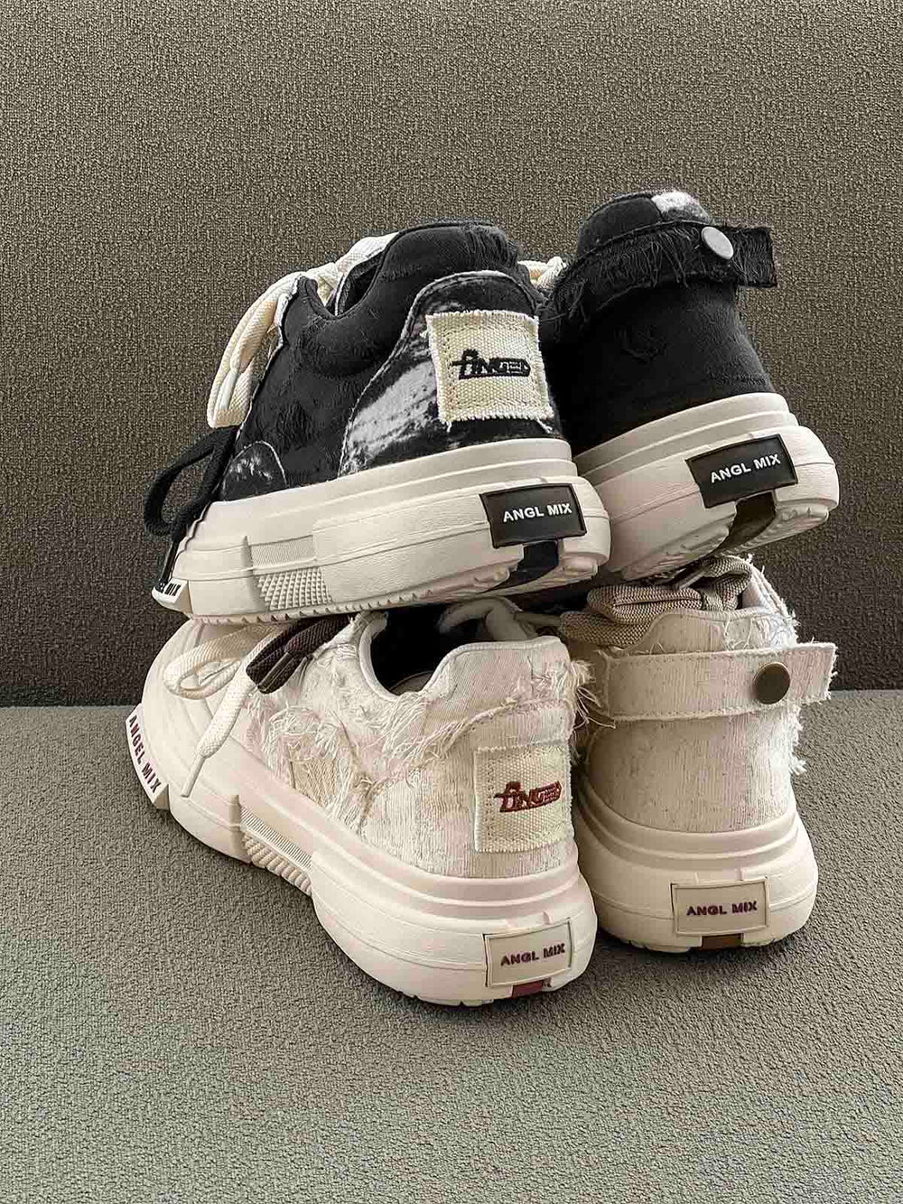 • Design Elements: Dual shoelace design. chunky sole. distressed upper details
