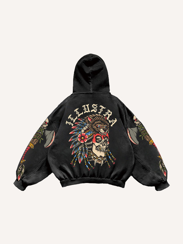Retro Chieftain Tattoo Style Print Sweatshirt