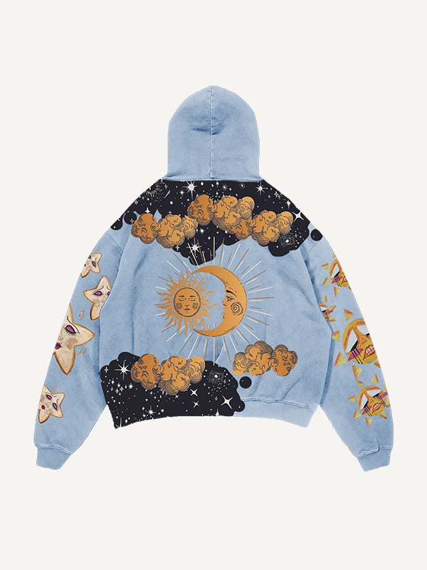 Sad Sun&Moon&Eye&Cloud&Graphic Print Slant Pockets Hoodie