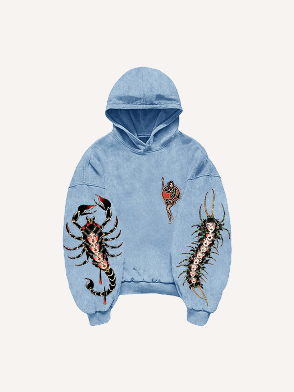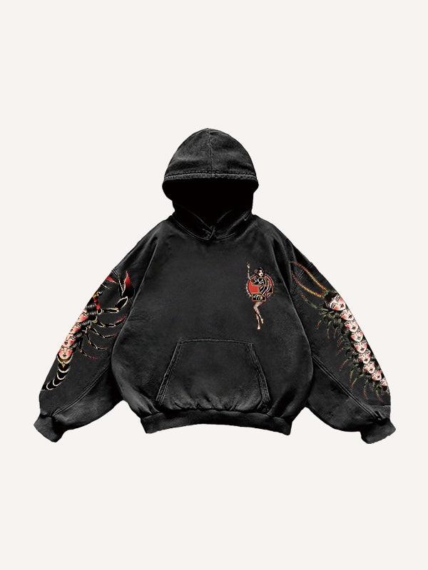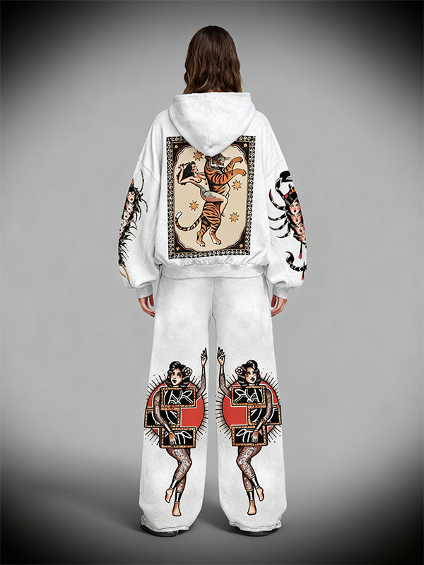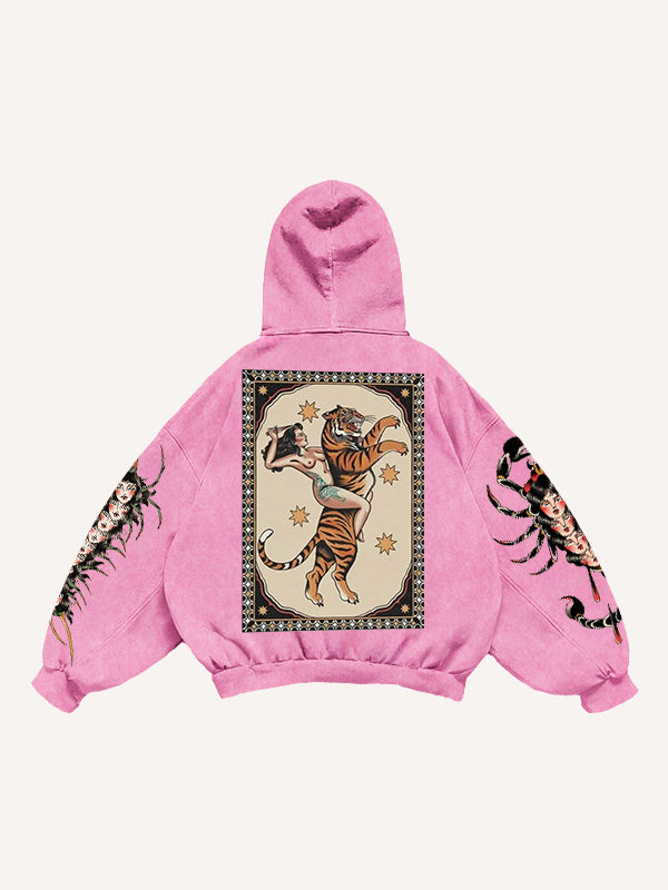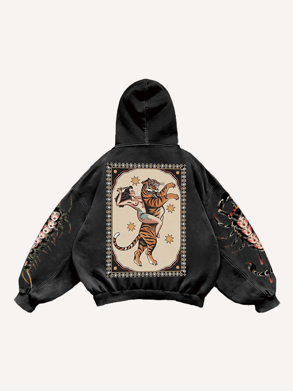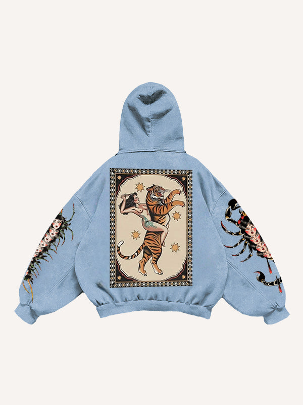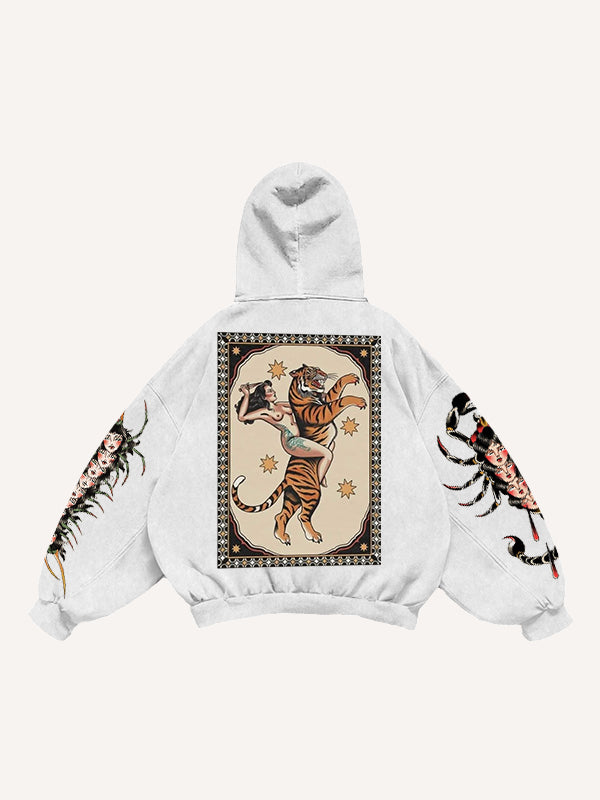Sexy girl tattoo riding tiger pattern sweatshirt