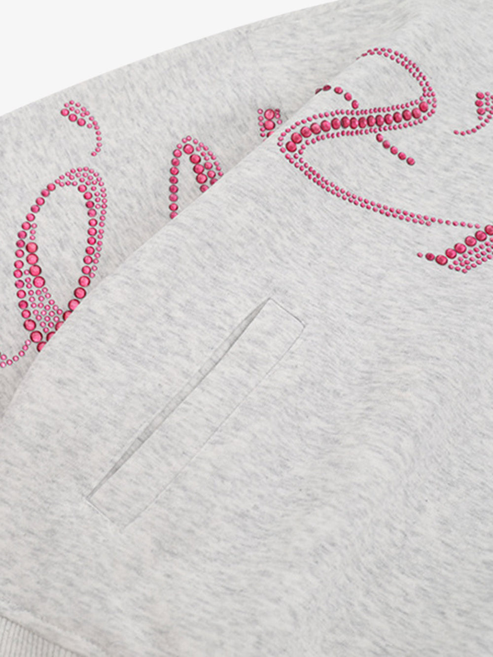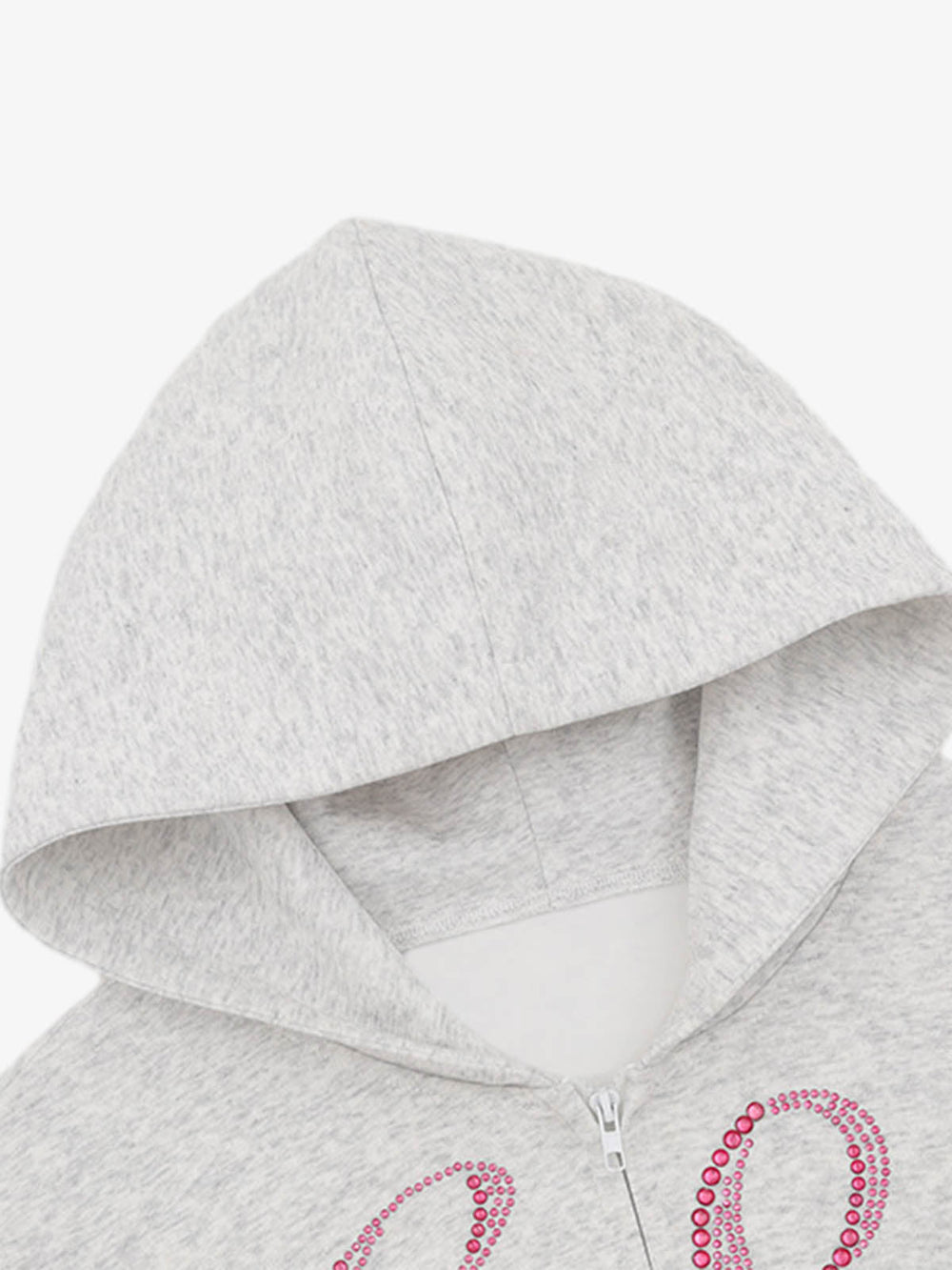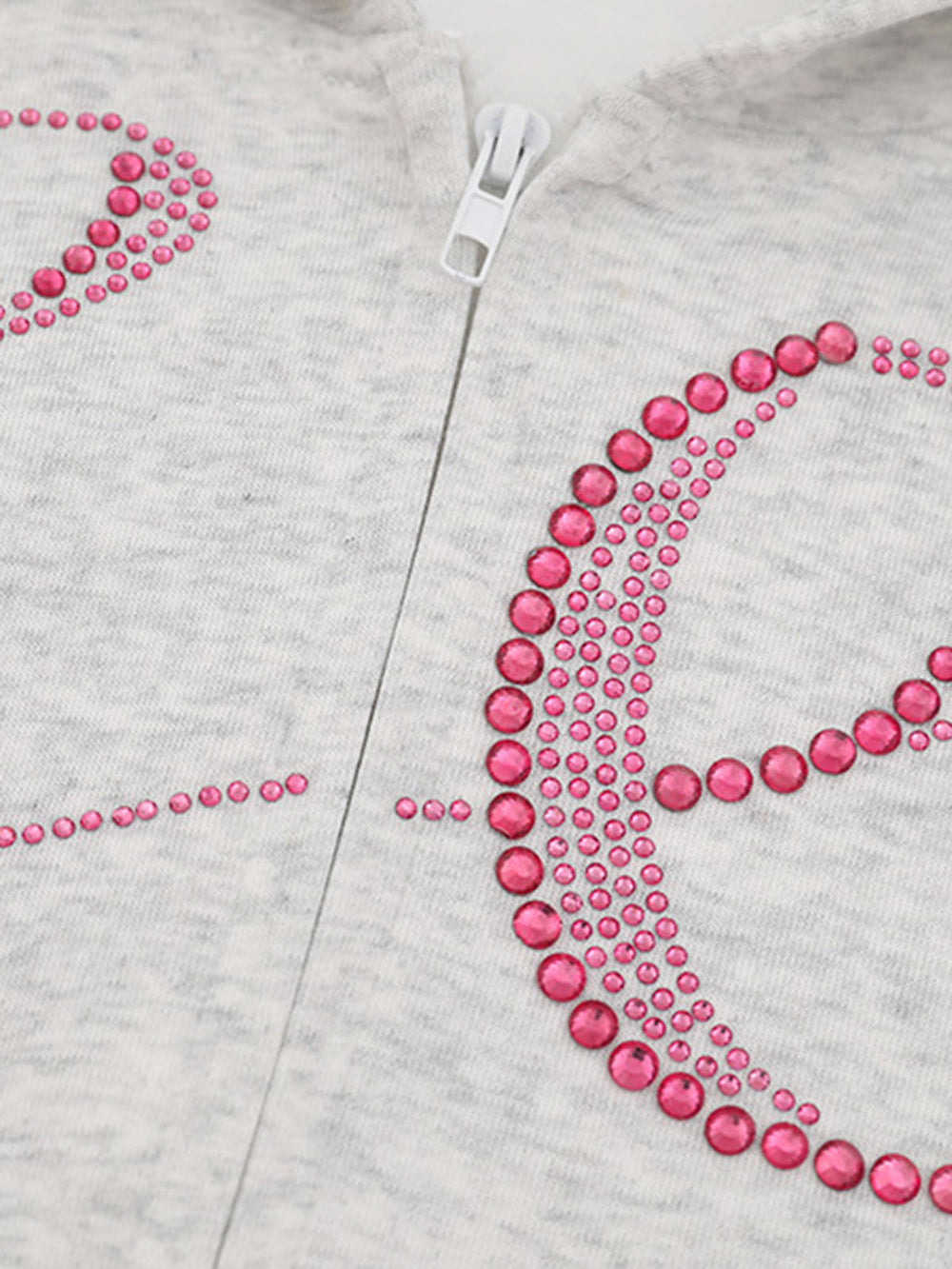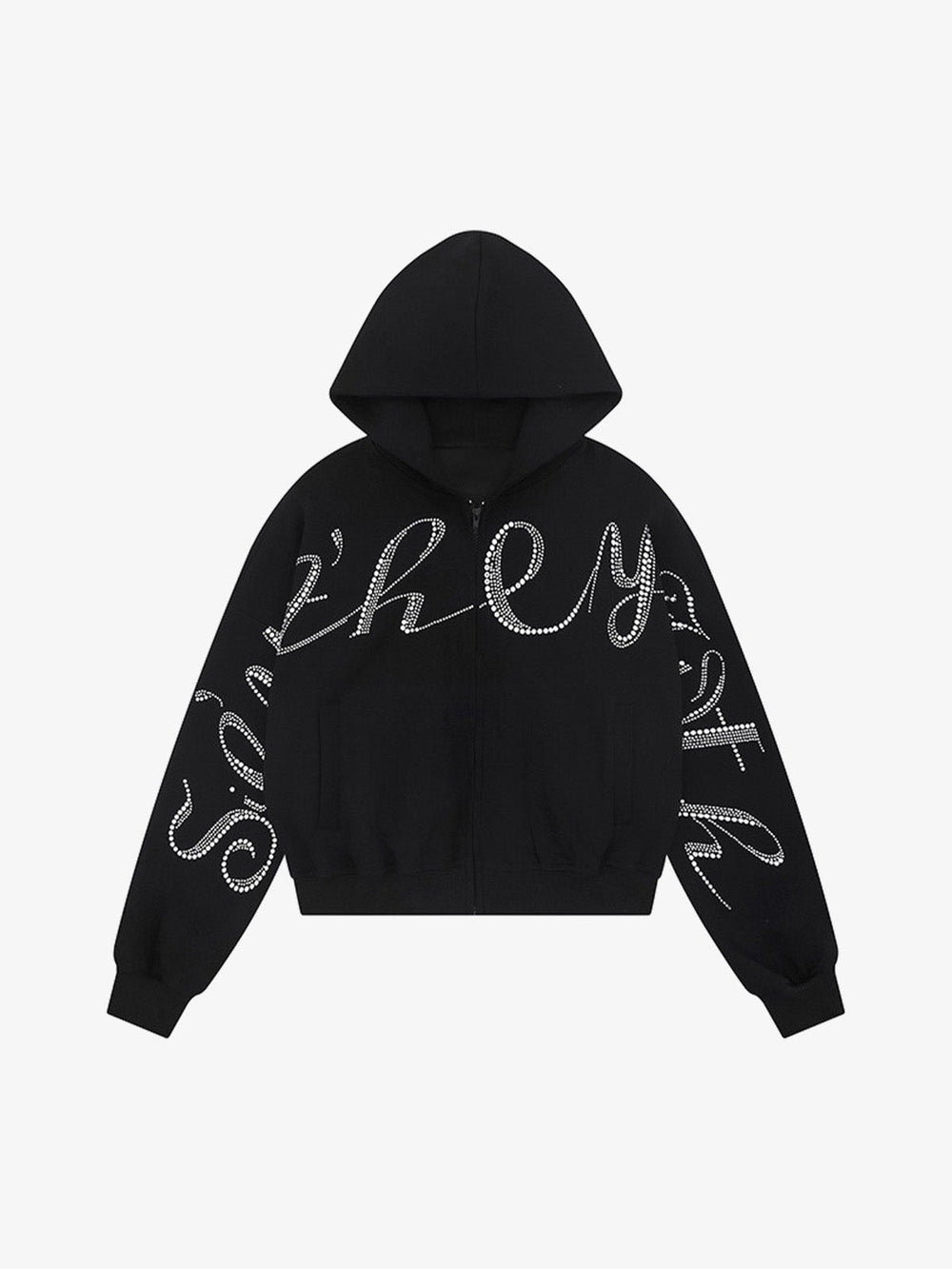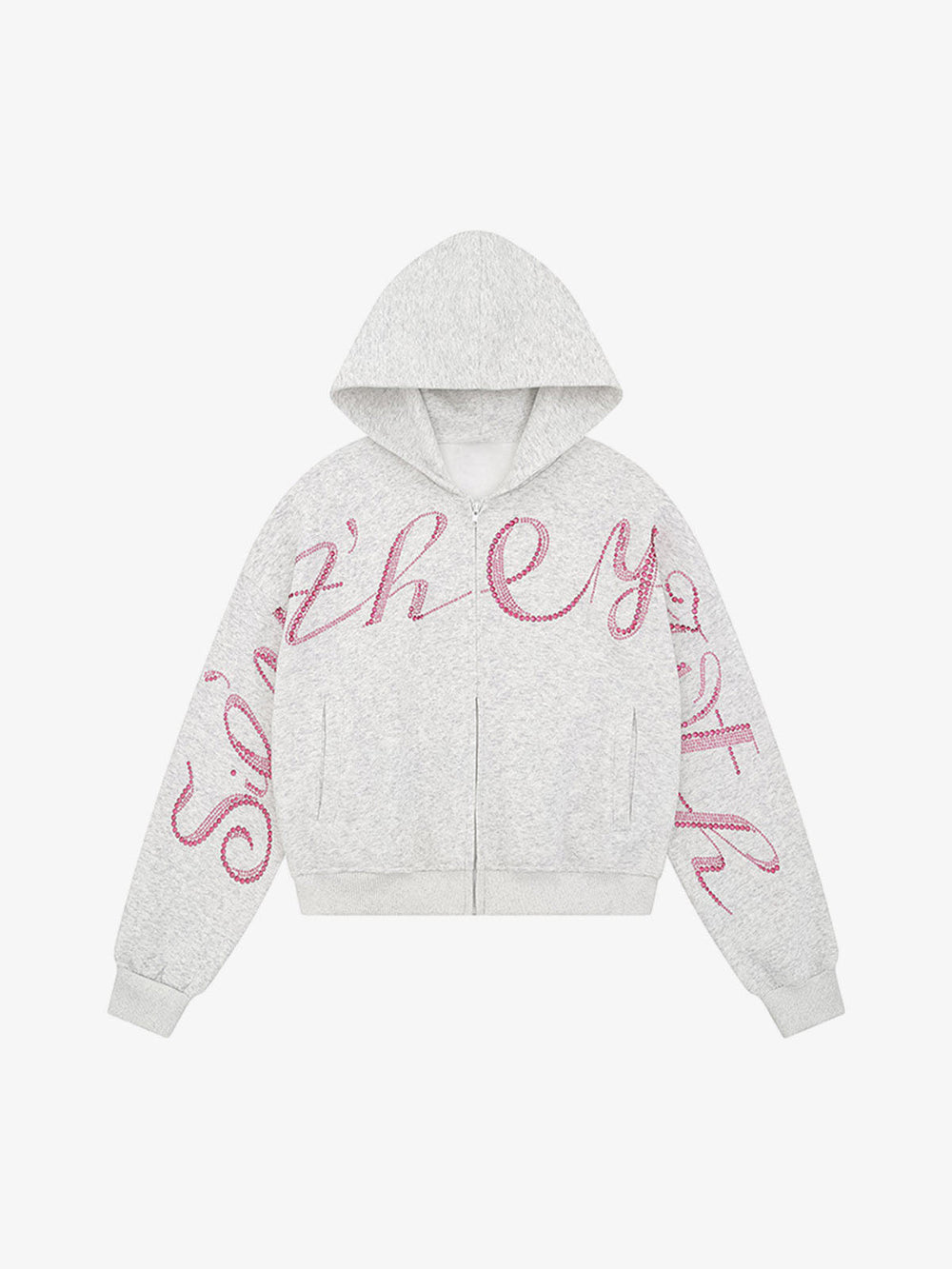 • Design Elements: Sparkling letter embellishments. hooded design. front zipper closure