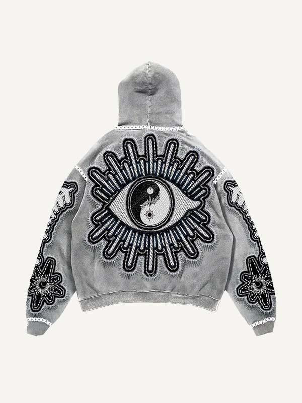 Sun&Moon&Star&Eye Graphic Faux Decal Print Slant Pockets Hoodie