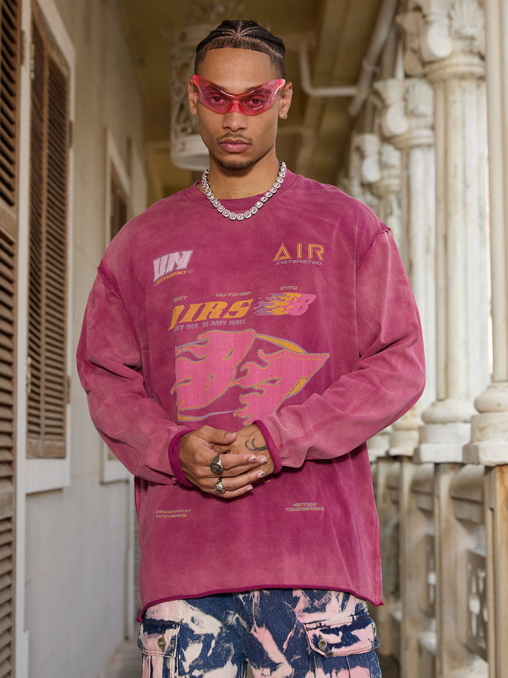 • Detail Features: Crew Neck. Long Sleeves. Graphic Print. Ribbed Cuffs and Hem