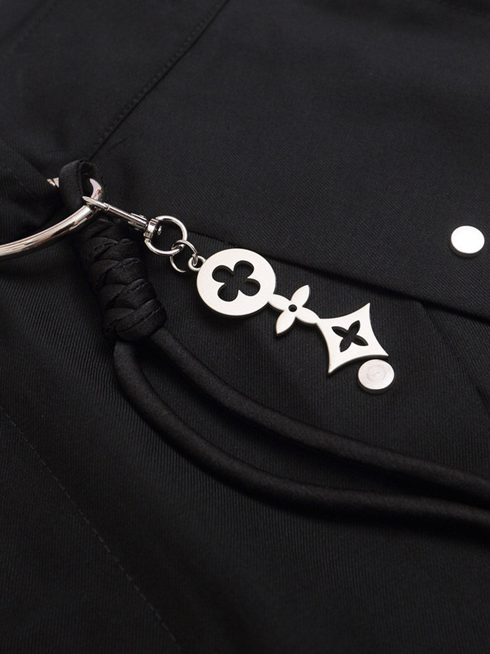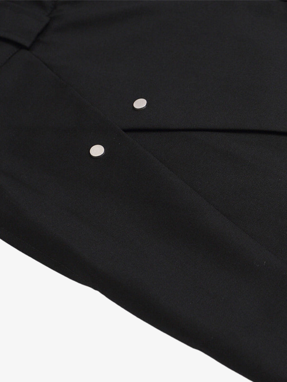 • Design Elements: Asymmetric hem design. decorative tassel with beads. button and belt loop closure