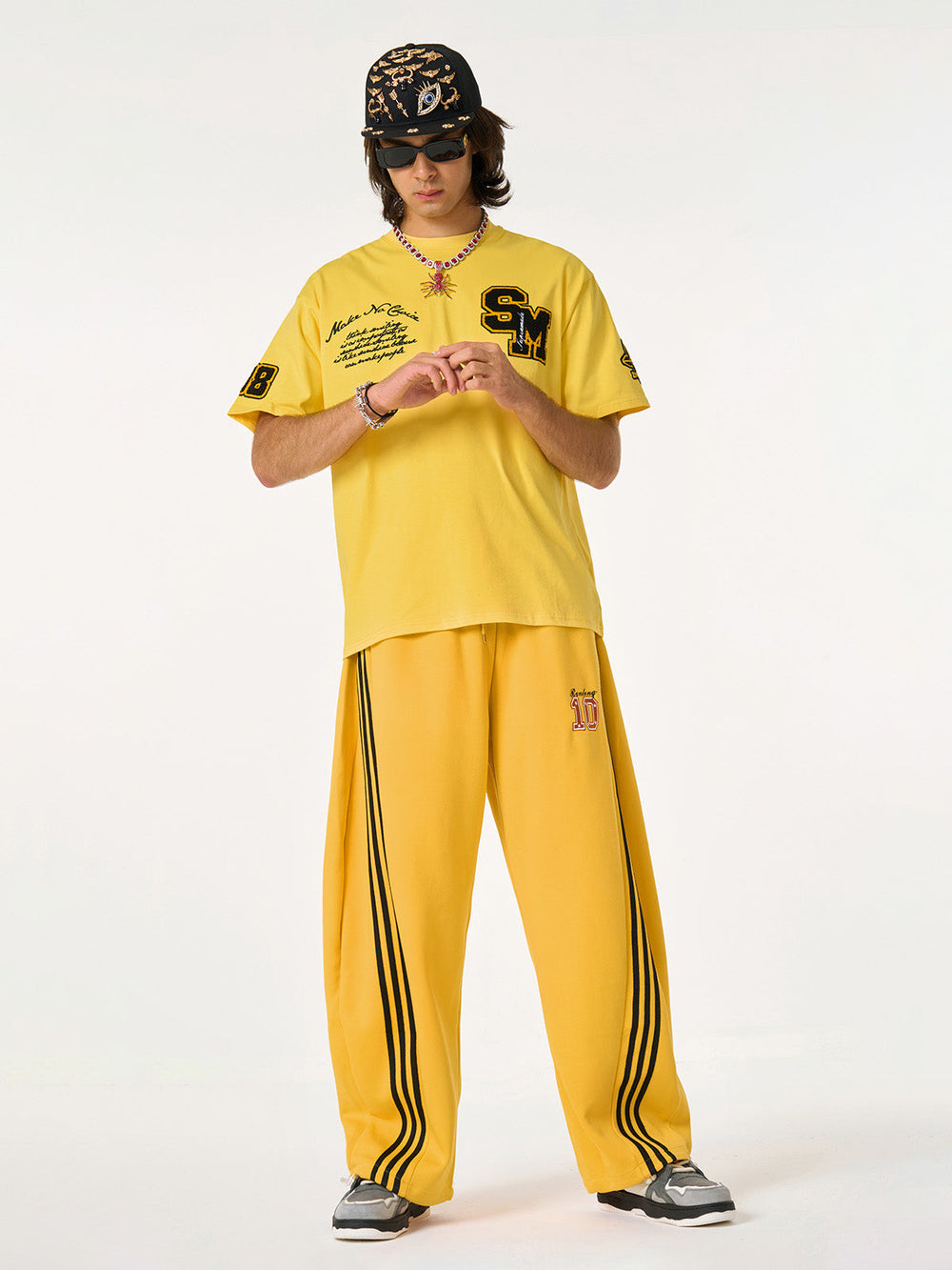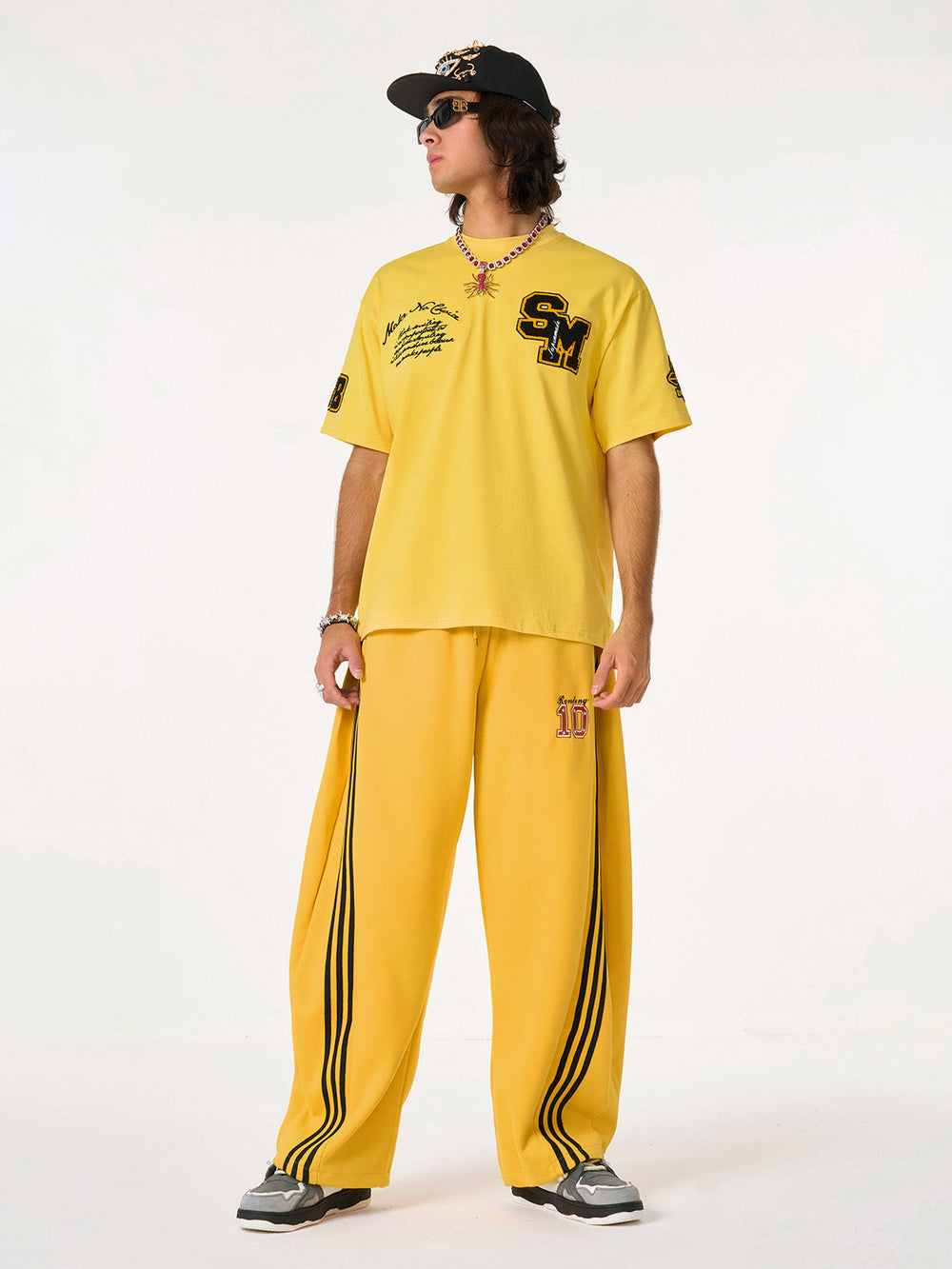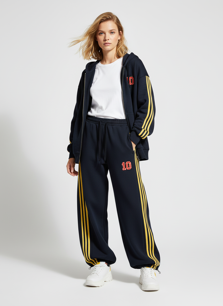 • Detail Features: Elastic waistband with drawstring. side stripes. number design on the leg